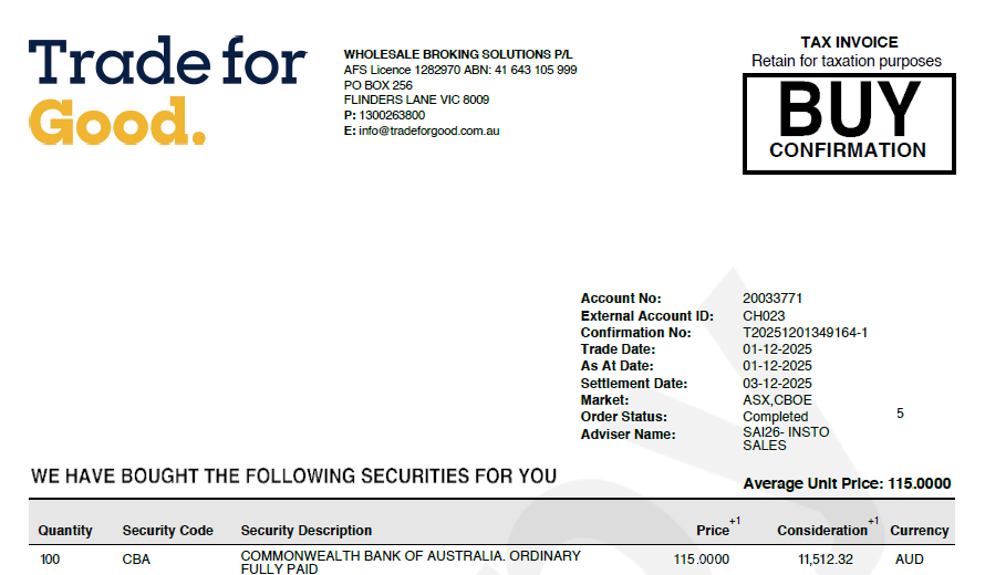 This confirmation serves as your legal record of the transaction and is required for tax purposes. It contains all the information you’ll need for capital gains tax calculations when you eventually sell.